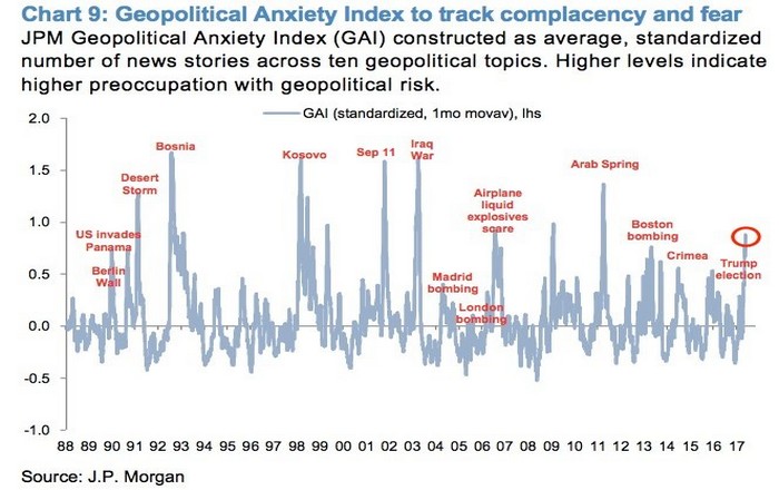 Με βάση το γεωπολιτικό ρίσκο, τις εν εξελίξει συγκρούσεις και τον κίνδυνο ανάφλεξης η τρομοκρατία βρίσκεται σε ιδιαίτερα χαμηλά επίπεδα, ιδιαίτερα στην Ευρώπη, που σε προηγούμενες δεκαετίας η κατάσταση ήταν πραγματικά έκρυθμη. Ακόμα όμως και σε επίπεδο περιστατικών ή απωλειών η τρομοκρατική δραστηριότητα είχε ενισχυθεί τα προηγούμενα χρόνια, απέχοντας όμως από τα επίπεδα που βρισκόταν τη δεκαετία του 1970, του 1980 και έως τα μέσα του 90.
