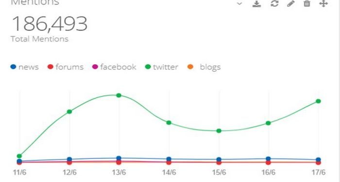 To query «Συμφωνία Σκόπια» κατέγραψε στο ελληνικό διαδίκτυο, σύμφωνα με το PaloPro 186.493 συνολικές αναφορές για την χρονική περίοδο 11 – 18 Ιουνίου 2018. Το Twitter υπερτερεί σημαντικά με βάση τα ποσοτικά δεδομένα καθώς συγκεντρώνει τεράστιο αριθμό αναφορών (167.237) και είναι και αυτό που διαμορφώνει την κρίση του ελληνικής διαδικτυακής κοινής γνώμης. Σε σύγκριση με τις προηγούμενες αναλύσεις μας για τα εθνικά θέματα είναι εντυπωσιακή η δυναμική του Twitter στο συγκεκριμένο query καθώς οι χρήστες του ελληνικού διαδικτύου το χρησιμοποίησαν για να σχολιάσουν τις εξελίξεις.