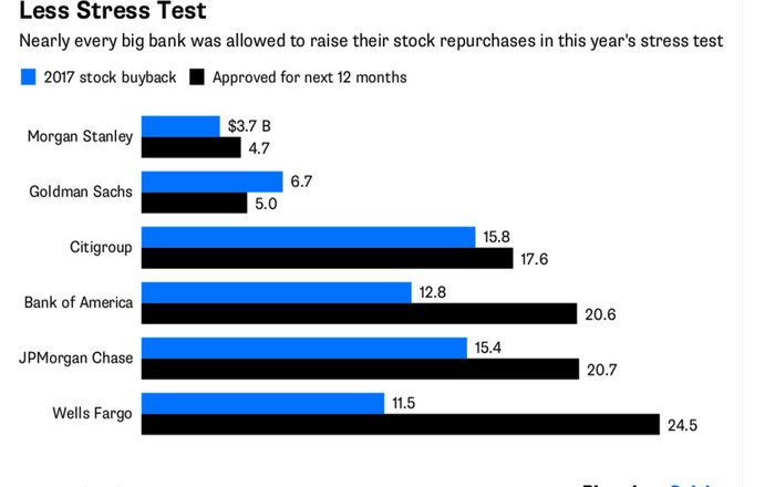 Την Παρασκευή 22α Ιουνίου η Fed ανακοίνωσε ότι οι 34 από τις 35 μεγαλύτερες τράπεζες της χώρας διαθέτουν επαρκείς σχεδιασμούς για την ανακεφαλαιοποίησή τους και άρα μπορούν να επιβιώσουν σε περίπτωση που ξεσπάσει νέα χρηματοοικονομική κρίση.