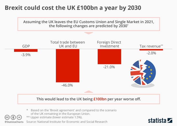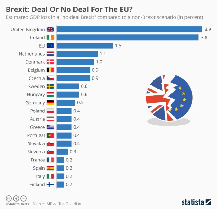 Αν δεν υπάρξει ενιαία ευρωπαϊκή συμφωνία για το Brexit, η Βρετανία θα αναγκαστεί να συνομολογήσει με τις ΗΠΑ, σε μια ήδη προετοιμασμένη εμπορική συμφωνία, η οποία, όμως θα έχει προαπαιτούμενο να μην υπάρχει αντίστοιχη με την ΕΕ. Αυτό θα αναγκάσει το Λονδίνο να κινηθεί επιθετικά προς την ΕΕ, επιδιώκοντας να σπάσει το ενιαίο και να προβεί σε ad hoc συμφωνίες με μεμονωμένες χώρες, κίνηση η οποία θα πυροδοτήσει εντάσεις και αντιπαραθέσεις, αναγκάζοντας το διευθυντήριο και τις Βρυξέλλες, είτε να αποδεχθούν την οπισθοδρόμηση, είτε να αναλάβουν δικαστική δράση, επιδεινώνοντας το ήδη βαρύ κλίμα στο εσωτερικό της Ένωσης.