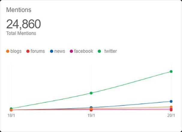 Το query «Συλλαλητήριο Σύνταγμα» κατέγραψε στο ελληνικό διαδίκτυο σύμφωνα με το σύγχρονο εργαλείο PaloPro για Web & Social Listening και Analytics 24.860 αναφορές για την χρονική περίοδο 18 – 20 Ιανουαρίου 2019. Ο μεγαλύτερος αριθμός των αναφορών προέρχεται από το Twitter που καθορίζει και τις τάσεις του διαδικτυακής κοινής γνώμης για το συγκεκριμένο query. Παράλληλα τα συναισθήματα των αναφορών εμφανίζουν μια πλειοψηφία θετικών συναισθημάτων, ακολουθούν τα ουδέτερα καθώς και ένας αριθμός αρνητικών συναισθημάτων.