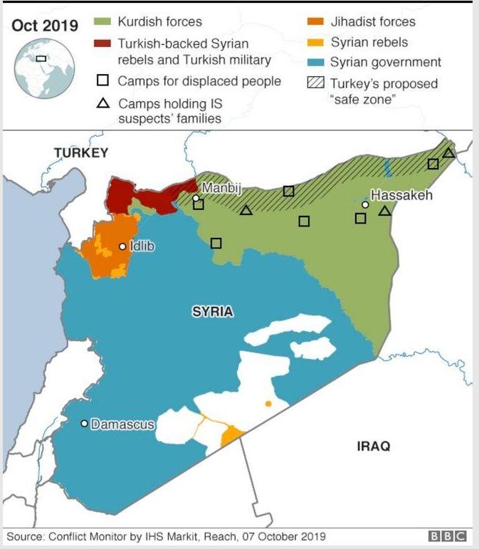 Οι κουρδικές πολιτοφυλακές κρατούν χιλιάδες μαχητές του Ισλαμικού Κράτους και άλλων τζιχαντιστικών οργανώσεων, οι οποίοι πλέον μπορεί ανά πάσα στιγμή να αποδράσουν εν μέσω γενικευμένης αναταραχής και ανομίας.