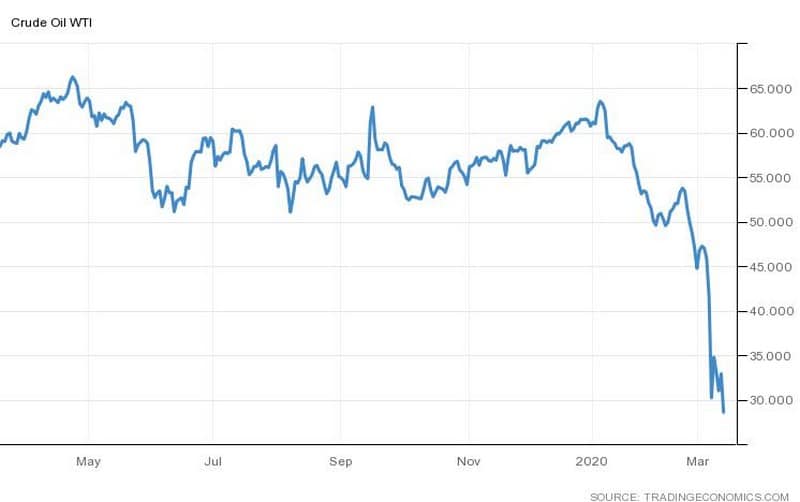 Η μείωση της παγκόσμιας ζήτησης λόγω της ανάσχεσης της αναπτυξιακής δυναμικής στην παγκόσμια οικονομία που προκαλεί ο κορονοϊός και η απόφαση της Ρωσίας να σπάσει τη συμμαχία OPEC+ για τον έλεγχο της παραγωγής πετρελαίου, σε μια προσπάθεια να διεκδικήσει μερίδια αγοράς και να δυναμιτίσει την προσπάθεια των ΗΠΑ να καταστούν κορυφαίος εξαγωγός πετρελαίου, προωθώντας το ακριβό σχιστολιθικό αργό, αποτελούν τους βασικούς παράγοντες που επιμένουν να πιέζουν την τιμή του “μαύρου χρυσού”. Σε απάντηση της απόφασης της Ρωσίας, η Σαουδική Αραβία ανακοίνωσε μείωση τιμών και τεράστια αύξηση της παραγωγής, πλημμυρίζοντας την αγορά με πετρέλαιο, όταν υπήρχε ήδη πλεόνασμα.