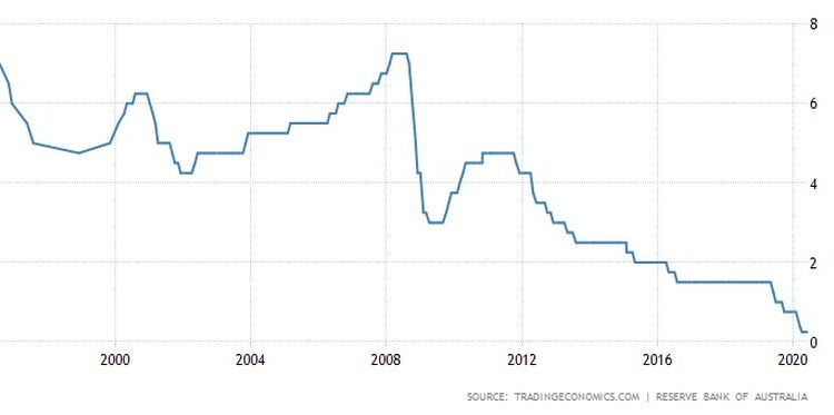 Η Reserve Bank of Australia άφησε το επιτόκιο μετρητών αμετάβλητο στο χαμηλό ρεκόρ του 0,25% κατά τη διάρκεια της συνεδρίασης του Ιουνίου, όπως ήταν ευρέως αναμενόμενο, με τα πρακτικά να καταγράφουν ότι η οικονομία διέρχεται μια πολύ δύσκολη περίοδο και βιώνει τη μεγαλύτερη οικονομική συρρίκνωση από τη δεκαετία του 1930.