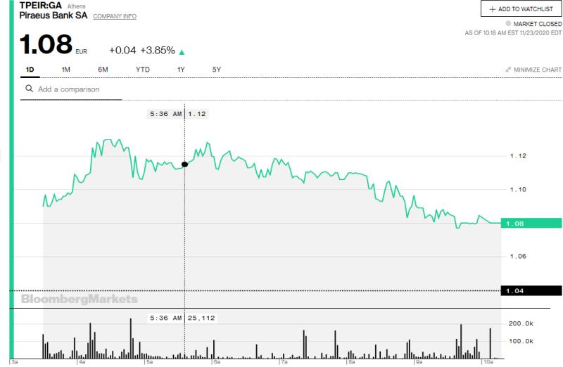 Σε συνέχεια της από 16 Νοεμβρίου 2020 ανακοίνωσής της, η Τράπεζα Πειραιώς ενημερώνει το επενδυτικό κοινό ότι παρέλαβε την οριστική απόφαση του Διοικητικού Συμβουλίου της Ευρωπαϊκής Κεντρικής Τράπεζας (ΕΚΤ), η οποία επιβεβαιώνει τη μη παροχή έγκρισης στο αίτημα της Τράπεζας για πληρωμή σε μετρητά ύψους €165εκατ. του ετήσιου τοκομεριδίου των υπό Αίρεση Μετατρέψιμων Ομολόγων (Contingent Convertible Security-CoCo) προς το Ταμείο Χρηματοπιστωτικής Σταθερότητας (ΤΧΣ), όπως αναφέρει σε ανακοίνωσή της η Τράπεζα Πειραιώς.