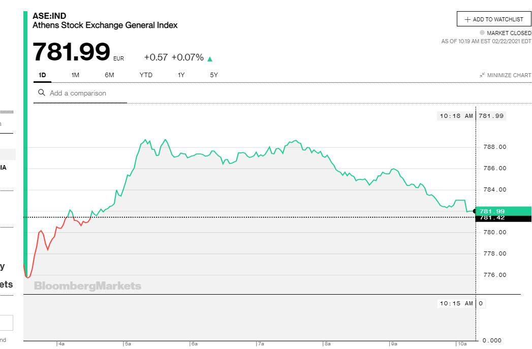 Μέσα σ’ αυτές τις συνθήκες κινήθηκε και η σημερινή συνεδρίαση, όπου ο Γενικός Δείκτης έκλεισε στις 781,99 μονάδες με οριακή άνοδο 0,07%, έχοντας ενδοσυνεδριακή διακύμανση από το χαμηλό των 775,35 μονάδων (-0,78%) λίγο μετά το άνοιγμα, έως το υψηλό των 788,75 μονάδων (+0,94%) στις 14:42 μ.μ.
