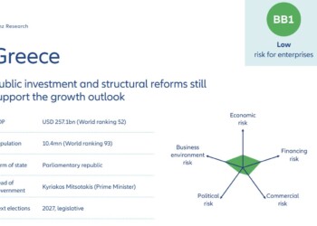 - Η βελτίωση του δημοσιονομικού ισοζυγίου μετά το μεγάλο έλλειμμα που καταγράφηκε λόγω της πανδημίας COVID-19. Το 2022 καταγράφηκε μικρό πρωτογενές πλεόνασμα, παρά τις επιδοτήσεις προς τις επιχειρήσεις και τα νοικοκυριά για την αντιμετώπιση της αύξησης του πληθωρισμού και των τιμών της ενέργειας. Η κυβέρνηση για το 2023 προβλέπει πρωτογενές πλεόνασμα 1,1 % του ΑΕΠ (και μειωμένο δημοσιονομικό έλλειμμα 1,8 % του ΑΕΠ) ενώ η Ευρωπαϊκή Επιτροπή προβλέπει ακόμη μεγαλύτερο πλεόνασμα. «Υπό τον πρωθυπουργό Μητσοτάκη, ο οποίος εξασφάλισε τη δεύτερη θητεία του, η κυβέρνηση αναμένεται να διατηρήσει την πειθαρχημένη δημοσιονομική πολιτική της. Ο οίκος πιστεύει ότι η αύξηση των κρατικών δαπανών θα ελεγχθεί και ότι το πρωτογενές ισοζύγιο θα παραμείνει σε θετικό πρόσημο από το 2024 και μετά», αναφέρεται στην έκθεση.