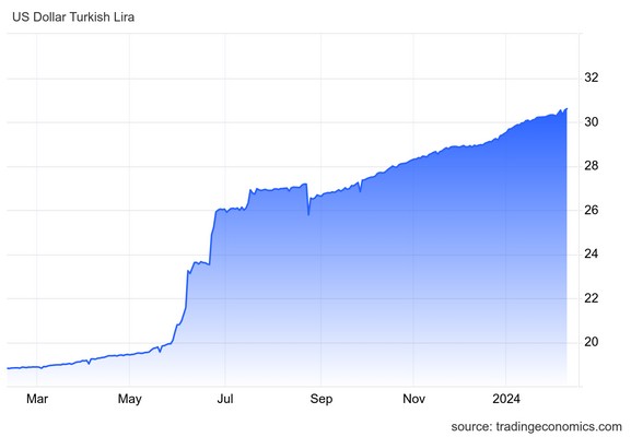 Η τουρκική λίρα σημείωσε νέα ιστορικά χαμηλά έναντι του δολαρίου, στα 30,6 τον Φεβρουάριο, καθώς οι traders συνεχίζουν να αξιολογούν τις προοπτικές της οικονομικής και νομισματικής πολιτικής της χώρας.