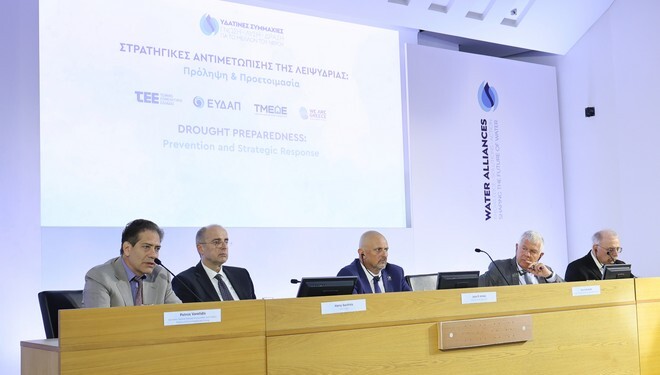 Την ανάγκη να δημιουργηθούν ευρύτερες συμπράξεις και να κινητοποιηθούν θεσμικοί εκπρόσωποι, φορείς και η κοινωνία, προκειμένου να αντιμετωπιστεί άμεσα το κρίσιμο θέμα της λειψυδρίας, ανέδειξαν οι ομιλητές στην εκδήλωση της πρωτοβουλίας «Υδάτινες Συμμαχίες», η οποία είχε ως θέμα «Στρατηγικές Αντιμετώπισης της Λειψυδρίας: Πρόληψη και Προετοιμασία».
