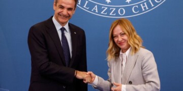 «Δεν είχαμε μία τυπική διπλωματική συνάντηση, αλλά μία ουσιαστική ευκαιρία να συντονίσουμε το βηματισμό μας με μεράκι για όλα τα ζητήματα από τις περιφερειακές εξελίξεις έως τη Μετανάστευση» υπογράμμισε ο πρωθυπουργός, Κυριάκος Μητσοτάκης, στις κοινές του δηλώσεις με την Ιταλίδα ομόλογο του, Τζόρτζια Μελόνι, μετά την ολοκλήρωση των εργασιών του Ανωτάτου Συμβουλίου Συνεργασίας Ελλάδος και Ιταλίας, αλλά και τη συνάντηση των δύο ηγετών. «Μοιραζόμαστε βαθύτατους πολιτικούς ιστορικούς και οικονομικούς δεσμούς που ενώνονται από κοινές προκλήσεις σε ένα κόσμο αυξημένης αβεβαιότητας» προσέθεσε.