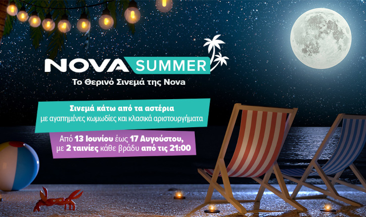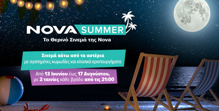 Tο αγαπημένο pop up κανάλι Novasummer είναι εδώ και είναι έτοιμο να ανεβάσει την καλοκαιρινή διάθεση! Η Nova σας προσκαλεί στο Θερινό Σινεμά της κάτω από τα αστέρια μέσα από το καλοκαιρινό κανάλι Novasummer προβάλλοντας από τις 13 Ιουνίου έως τις 17 Αυγούστου, δύο ταινίες back to back.