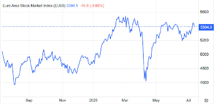 Ο Πρόεδρος των ΗΠΑ ανακοίνωσε την επιβολή δασμού 35% στις καναδικές εισαγωγές από την 1η Αυγούστου και άφησε να εννοηθεί πως σχεδιάζει την επιβολή καθολικών δασμών της τάξης του 15% με 20% στους περισσότερους εμπορικούς εταίρους. Η Ευρωπαϊκή Ένωση αναμένεται να λάβει επίσημη ειδοποίηση για τα ισχύοντα ποσοστά δασμών πιθανόν αργότερα εντός της ημέρας.