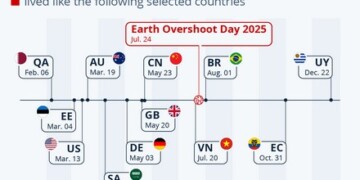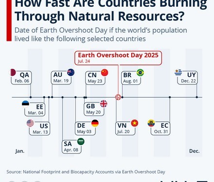 ΗΗμέρα Υπερκατανάλωσης της Γης (Earth Overshoot Day) για το 2025 ήταν στις 24 Ιουλίου. Αυτό σημαίνει πως μέσα σε μόλις επτά μήνες έχουμε ήδη καταναλώσει όλους τους φυσικούς πόρους που ο πλανήτης μπορεί να αναγεννήσει μέσα σε ένα ημερολογιακό έτος.