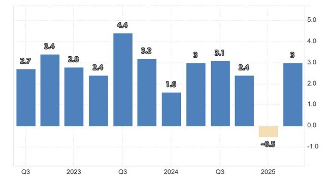 Ξεπέρασε αισθητά τις προσδοκίες η ανάπτυξη του ΑΕΠ στις ΗΠΑ το δεύτερο τρίμηνο του 2025, καθώς το Trump-effect έπαιξε καθοριστικό ρόλο στην αρχική συσσώρευση εισαγωγών του πρώτο τρίμηνο και την υποχώρησή τους το δεύτερο.