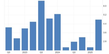 Η τουρκική οικονομία αναπτύχθηκε κατά 4,8% σε ετήσια βάση το Β΄ τρίμηνο του 2025, ο ταχύτερος ρυθμός από το Α΄ τρίμηνο του 2024, ξεπερνώντας τις προσδοκίες της αγοράς για 4,1% και επιταχύνοντας από το αναθεωρημένο 2,3% του προηγούμενου τριμήνου.