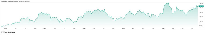 Οι μετοχές της LVMH, που διαπραγματεύονται στο Euronext Paris, κινούνταν περίπου στα 620 ευρώ ανά μετοχή στα τέλη Νοεμβρίου, μετά από έντονη μεταβλητότητα καθ’ όλη τη διάρκεια της χρονιάς, αντανακλώντας περισσότερο μια φάση μετάβασης μεταξύ της προηγούμενης πτώσης και της αναμενόμενης σταδιακής ανάκαμψης.