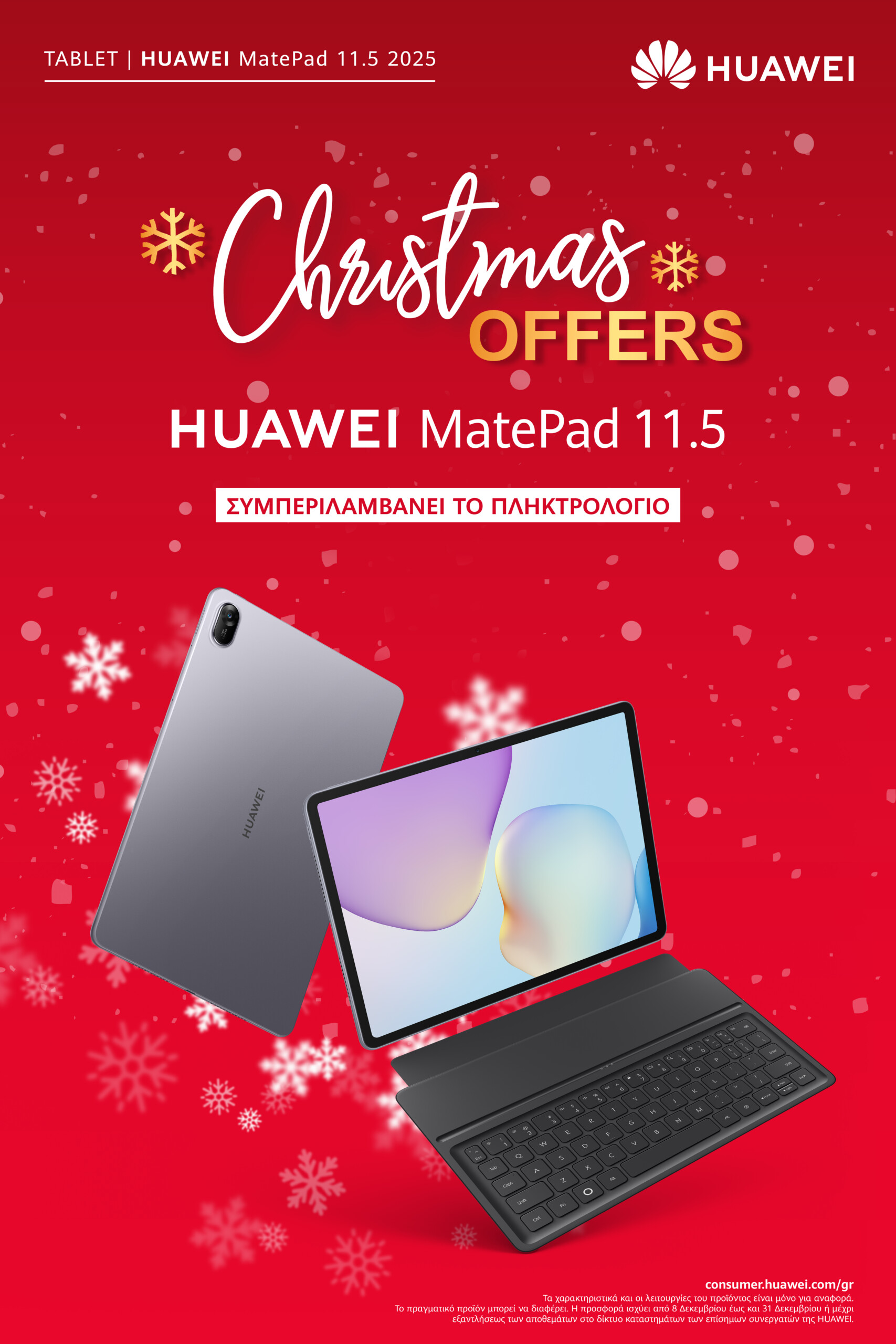 Η Huawei υποδέχεται τη φετινή εορταστική περίοδο με μια ολοκληρωμένη σειρά Χριστουγεννιάτικων προσφορών σε όλες τις κατηγορίες προϊόντων της – smartwatches, audio συσκευές και tablets. Από premium wearables με προηγμένα health features μέχρι ακουστικά υψηλής ποιότητας και tablets νέας γενιάς, οι καταναλωτές μπορούν να ανακαλύψουν το ιδανικό δώρο για κάθε ηλικία, κάθε τρόπο ζωής και κάθε ανάγκη.