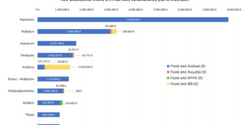 Τα υψηλότερα συνολικά ποσά για τους ΟΤΑ και τους κατοίκους, αφορούν τους ακόλουθους Δήμους: