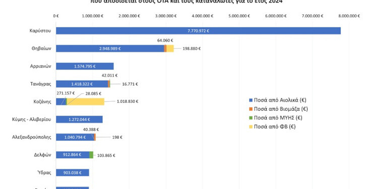 Τα ποσά από τα αιολικά πάρκα και λοιπές Α.Π.Ε. στους ΟΤΑ και τους καταναλωτές ρεύματος ανά Δήμο