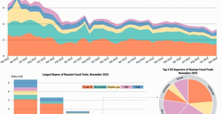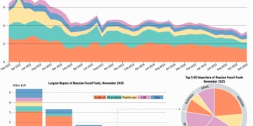 Η επίπτωση στα δημόσια έσοδα είναι ήδη ορατή. Τα έσοδα από εξαγωγές ορυκτών καυσίμων βρίσκονται στα χαμηλότερα επίπεδα από την έναρξη της εισβολής στην Ουκρανία, με τα ημερήσια έσοδα να υποχωρούν σημαντικά σε σχέση με το 2022. Η μείωση αυτή προκύπτει κυρίως από την τιμολόγηση και όχι από την κατάρρευση των όγκων.
