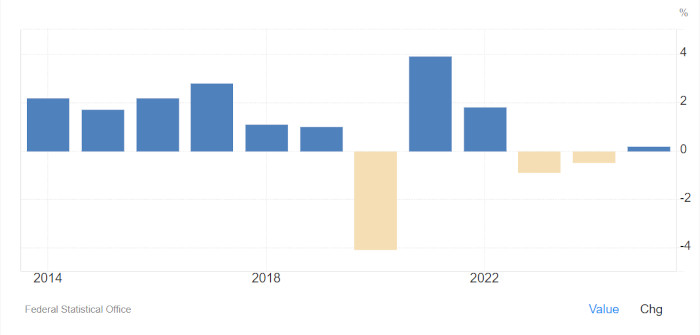 Η γερμανική οικονομία επέστρεψε οριακά σε θετικό έδαφος το 2025, βάζοντας τέλος σε μια διετία συρρίκνωσης, σύμφωνα με προκαταρκτικές εκτιμήσεις της Ομοσπονδιακής Στατιστικής Υπηρεσίας (Destatis). Το ΑΕΠ αυξήθηκε κατά 0,2% σε ετήσια βάση, μετά τη μείωση κατά 0,5% που είχε καταγραφεί το 2024, με την ιδιωτική κατανάλωση και τις κρατικές δαπάνες να λειτουργούν ως βασικά στηρίγματα σε μια ανάκαμψη που παραμένει εύθραυστη.
