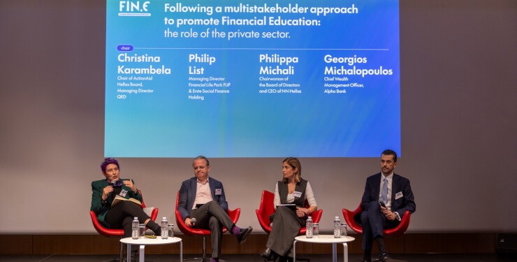 Τέλος, ο Chief Wealth Management Officer της Alpha Bank τόνισε ότι η επιτυχία των πρωτοβουλιών που λαμβάνονται για τον χρηματοοικονομικό εγγραμματισμό προϋποθέτει συνέργεια, συμπληρωματικότητα ρόλων και θεσμική συνέπεια στον χρόνο. «Οι συνεργασίες αποδίδουν μόνο όταν λειτουργούν ως συνεκτικά οικοσυστήματα, με κοινό σκοπό, τεκμηριωμένο σχεδιασμό και ξεκάθαρους ρόλους. Η FIN.e έχει τη δυνατότητα να αναβαθμίσει αυτό το μοντέλο σε ευρωπαϊκό επίπεδο, ευθυγραμμίζοντας πολιτική και πράξη και καθιστώντας τον χρηματοοικονομικό εγγραμματισμό μια θεμελιώδη, συστημική δεξιότητα για όλους τους Ευρωπαίους πολίτες», κατέληξε.