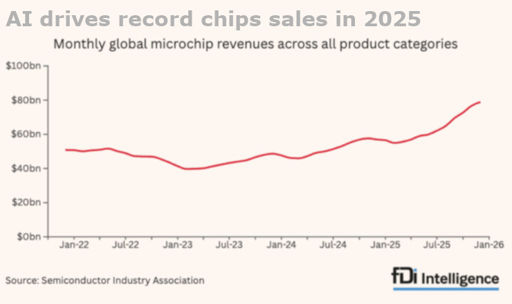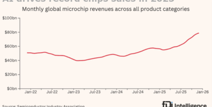 Η «επανάσταση» της τεχνητής νοημοσύνης έσπρωξε τις παγκόσμιες πωλήσεις ημιαγωγών σε ιστορικό υψηλό το 2025, με τα logic και τα memory chips να σηκώνουν το μεγαλύτερο βάρος της ανόδου.