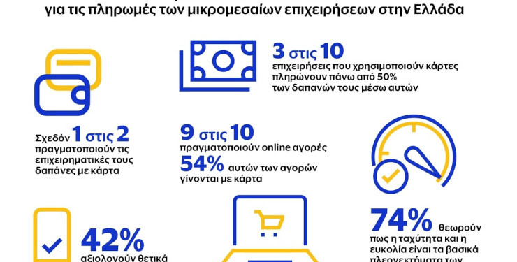 Οι πληρωμές με κάρτα κερδίζουν σταθερά έδαφος στις επιχειρηματικές δαπάνες των μικρομεσαίων επιχειρήσεων στην Ελλάδα, σύμφωνα με έρευνα του ΙΜΕ ΓΣΕΒΕΕ για λογαριασμό της Visa.
