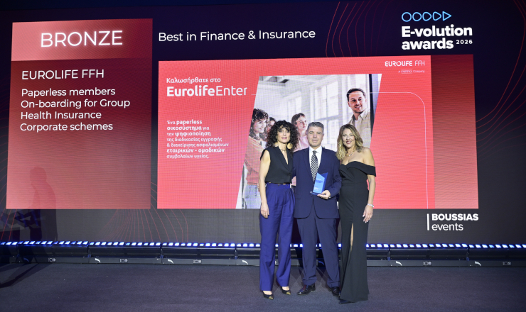 Η Eurolife FFH διακρίθηκε στα e-volution Awards 2026, τον θεσμό επιχειρηματικών βραβείων που διοργανώθηκε για 15η χρονιά, αποσπώντας το Bronze βραβείο στην κατηγορία Best in Finance & Insurance. Η διάκριση αφορά το EurolifeEnter, την καινοτόμο πλατφόρμα για τη διαχείριση ομαδικών συμβολαίων υγείας, επιβεβαιώνοντας τη στρατηγική επένδυση της εταιρείας στην ψηφιοποίηση και τη διαρκή αναβάθμιση των υπηρεσιών της.