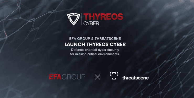 Η ThreatScene, εταιρία με εξειδίκευση στον τομέα της κυβερνοασφάλειας, και το EFA GROUP, διεθνής όμιλος με ισχυρή ελληνική παρουσία στους τομείς της Άμυνας, της Ασφάλειας και της Αεροδιαστημικής, ανακοινώνουν την ίδρυση της κοινής εταιρίας (joint venture) THYREOS CYBER, με στόχο την ανάπτυξη προηγμένων δυνατοτήτων αμυντικής κυβερνοασφάλειας.