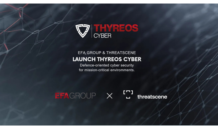 Η ThreatScene, εταιρία με εξειδίκευση στον τομέα της κυβερνοασφάλειας, και το EFA GROUP, διεθνής όμιλος με ισχυρή ελληνική παρουσία στους τομείς της Άμυνας, της Ασφάλειας και της Αεροδιαστημικής, ανακοινώνουν την ίδρυση της κοινής εταιρίας (joint venture) THYREOS CYBER, με στόχο την ανάπτυξη προηγμένων δυνατοτήτων αμυντικής κυβερνοασφάλειας.
