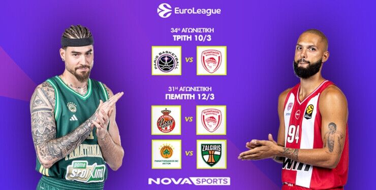 Καταιγιστική μπασκετική δράση έρχεται και αυτή την εβδομάδα με EuroLeague & EuroCup στο παρκέ του Novasports! Η EuroLeague, η κορυφαία ευρωπαϊκή διασυλλογική διοργάνωση, συνεχίζεται με αμείωτο ενδιαφέρον και τα φώτα πέφτουν στους αγώνες των ελληνικών ομάδων.