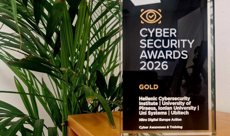 Η συνεργασία του Hellenic Cybersecurity Institute με το Πανεπιστήμιο Πειραιώς, το Ιόνιο Πανεπιστήμιο, τη Uni Systems και τη Ubitech για το ευρωπαϊκό έργο NITRO Digital Europe Action τιμήθηκε με το Χρυσό Βραβείο στη θεματική ενότητα Cyber Awareness & Training των Cyber Security Awards 2026, κατακτώντας την 1η θέση στην κατηγορία του.