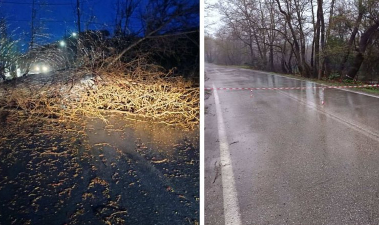 Παράλληλα, έχουν καταγραφεί περιστατικά πτώσης δέντρων, γεγονός που καθιστά επικίνδυνη την κυκλοφορία τόσο πεζών όσο και οχημάτων σε διάφορα σημεία του νησιού.