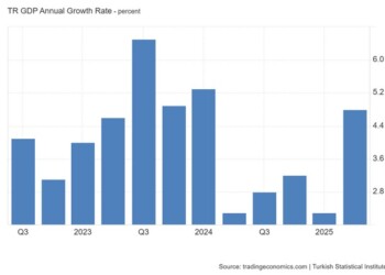 Η τουρκική οικονομία αναπτύχθηκε κατά 4,8% σε ετήσια βάση το Β΄ τρίμηνο του 2025, ο ταχύτερος ρυθμός από το Α΄ τρίμηνο του 2024, ξεπερνώντας τις προσδοκίες της αγοράς για 4,1% ...